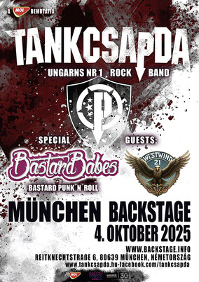 Am 4. Oktober kam die ungarische Band Tankcsapda ins Münchener Backstage /Werk. Die BastardBabes waren mit ihrem erst zweiten Gig in runderneuerter Besetzung als Vorband dabei.